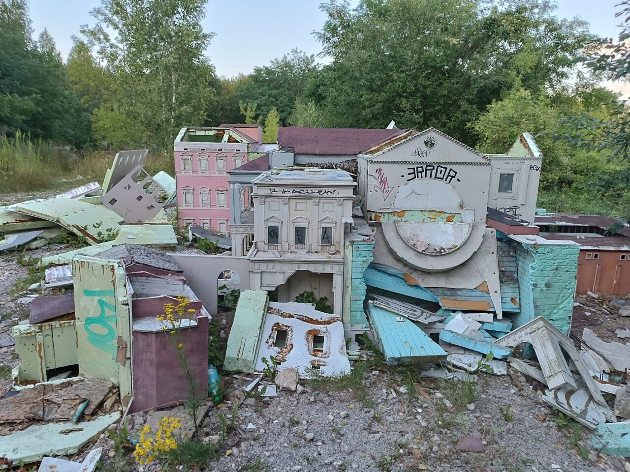 Na dnie kamieniołomu leży opuszczony Park Miniatur. Miniaturowe miasteczko, które miało tętnić życiem. Drewniane domki zaprojektowane jako miejsca noclegowe, alejki, place. Dziś wszystko to przypominało porzuconą scenografię. Powybijane szyby, zbutwiałe framugi, drzwi wiszące na jednym zawiasie. Dachy zapadnięte pod własnym ciężarem.