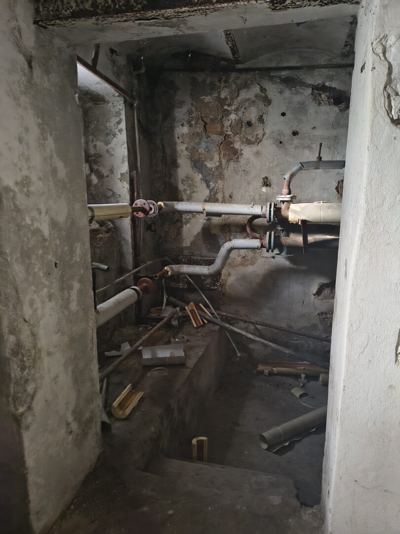 Dla bardziej wysportowanych dobrze przeskoczyć 😅 w środku znajdowało się dużo butelek ,ówczesnych używek.Poddasze określam jako trochę agonalny i strach stawiać tam jakiekolwiek kroki. Miejsce w środku ma z pewnością swój klimat, ale nie ma nic poza gołymi ścianami i napisami.Zewnętrzna architektura bardziej zachwyca,niż to co znajduje się w środku.