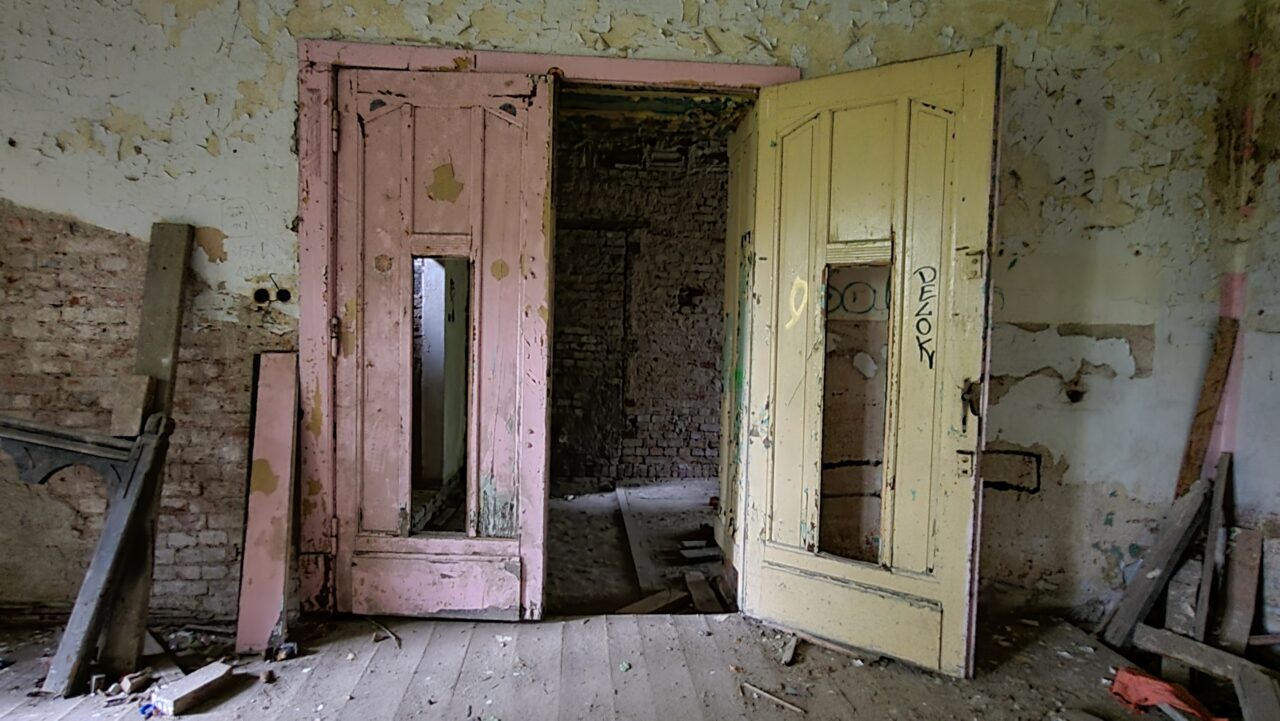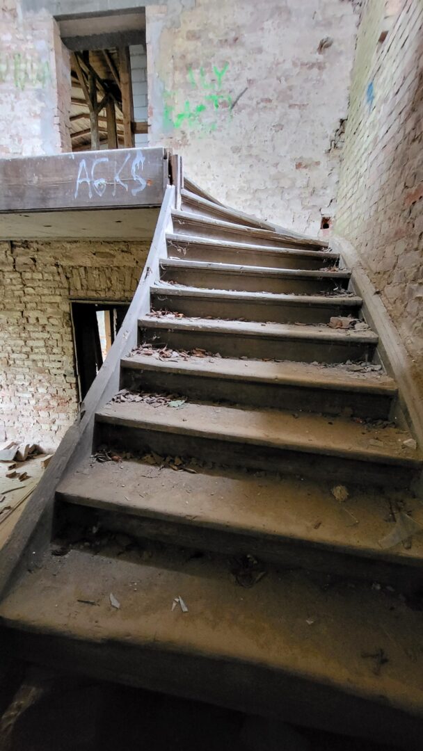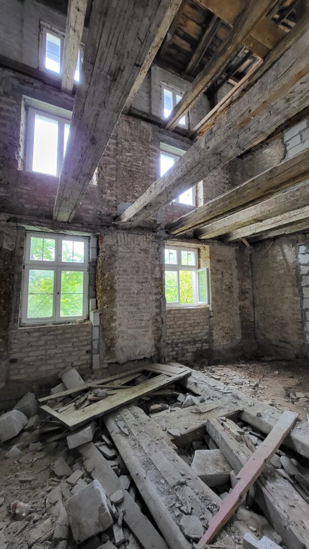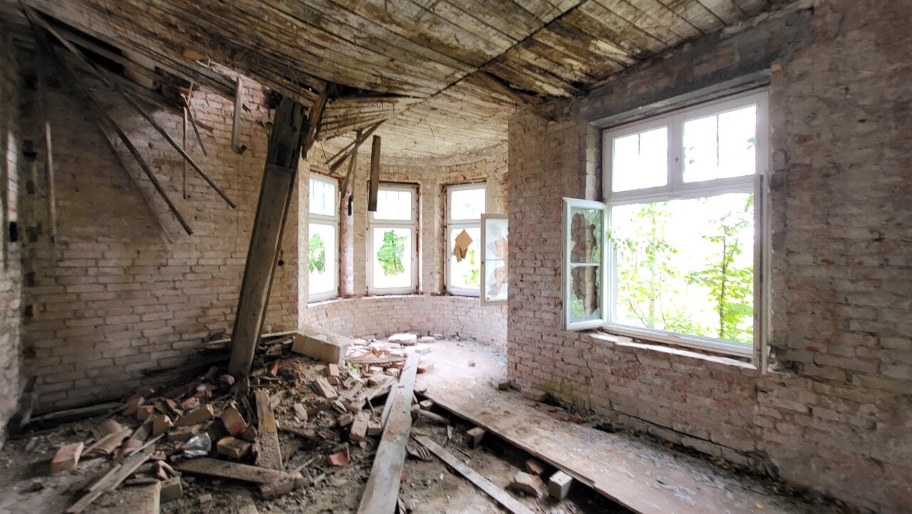 Takie dos艂ownie nic. Kto艣 kiedy艣 usi艂owa艂 to ratowa膰, s膮 艣cianki dzia艂owe z gazobetonu, ale poza tym totalna ruina – go艂e 艣ciany – zbite tynki i spr贸chnia艂e deski. Kamera to atrapa/ straszak. Czujek nie ma. Piwnica i parter mo偶na pochodzi膰, ale na pietra ryzykownie (pod艂oga znacznie zawalona (spr贸chnia艂a), schody oberwane.
