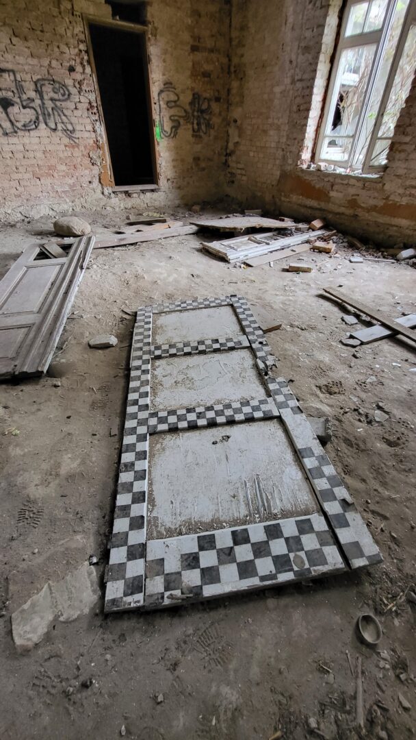 Dw贸r 艂atwo dost臋pny. Otwarta boczna brama, a ta姆偶e kilka luk w ogrodzeniu. Okna powybijane, drzwi otwarte. Nikt nie pilnuje i nie ma problemu z wej艣ciem. Sam budynek pi臋kny z zewn膮trz. Wida膰, 偶e kto艣 pr贸bowa艂 to ratowa膰. W 艣rodku nie ma za bardzo co ogl膮da膰. Jest to co wida膰 na zdj臋ciach. Z dawnych lat kilka futryn, podobizna – chyba S艂owackiego?, jakie艣 drzwi, stare zrujnowane schody… ale i tak warto