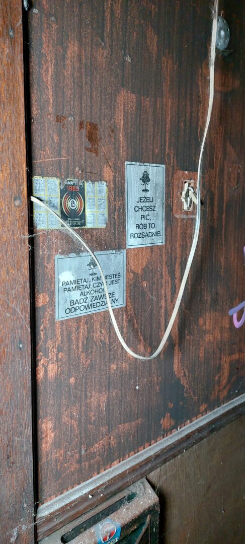 w srodku natomiast zachowal sie jeszcze fortepian i kilka artefaktow (menu sprzed denominacji, w贸z),